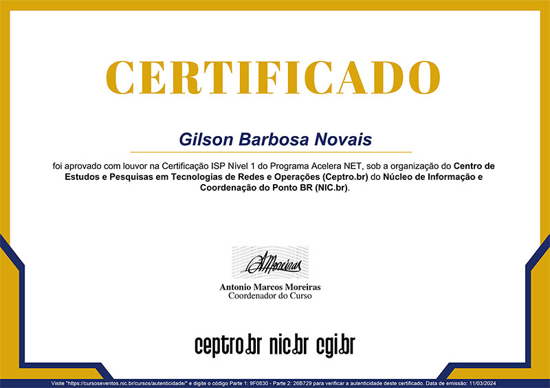 Formação Técnica para ISPs com certificação que abordou temas como segurança, roteamento, IPv6 e DNS de maneira clara e didática.