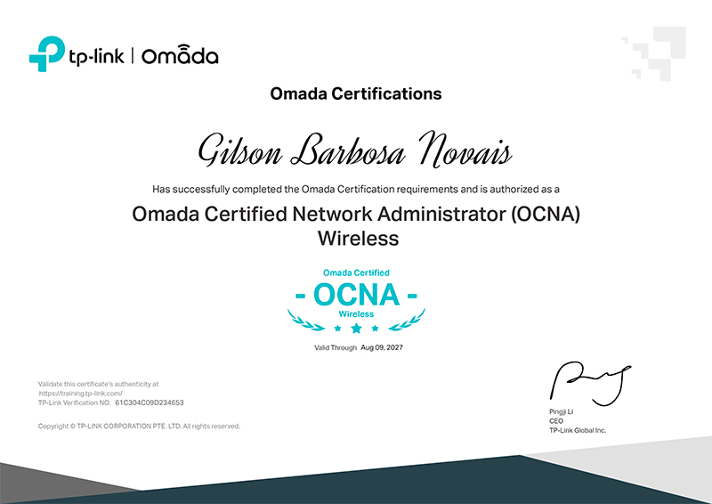 Certificação Omada Administrador Redes (OCNA) Wireless, realizada em São Paulo presencialmente.