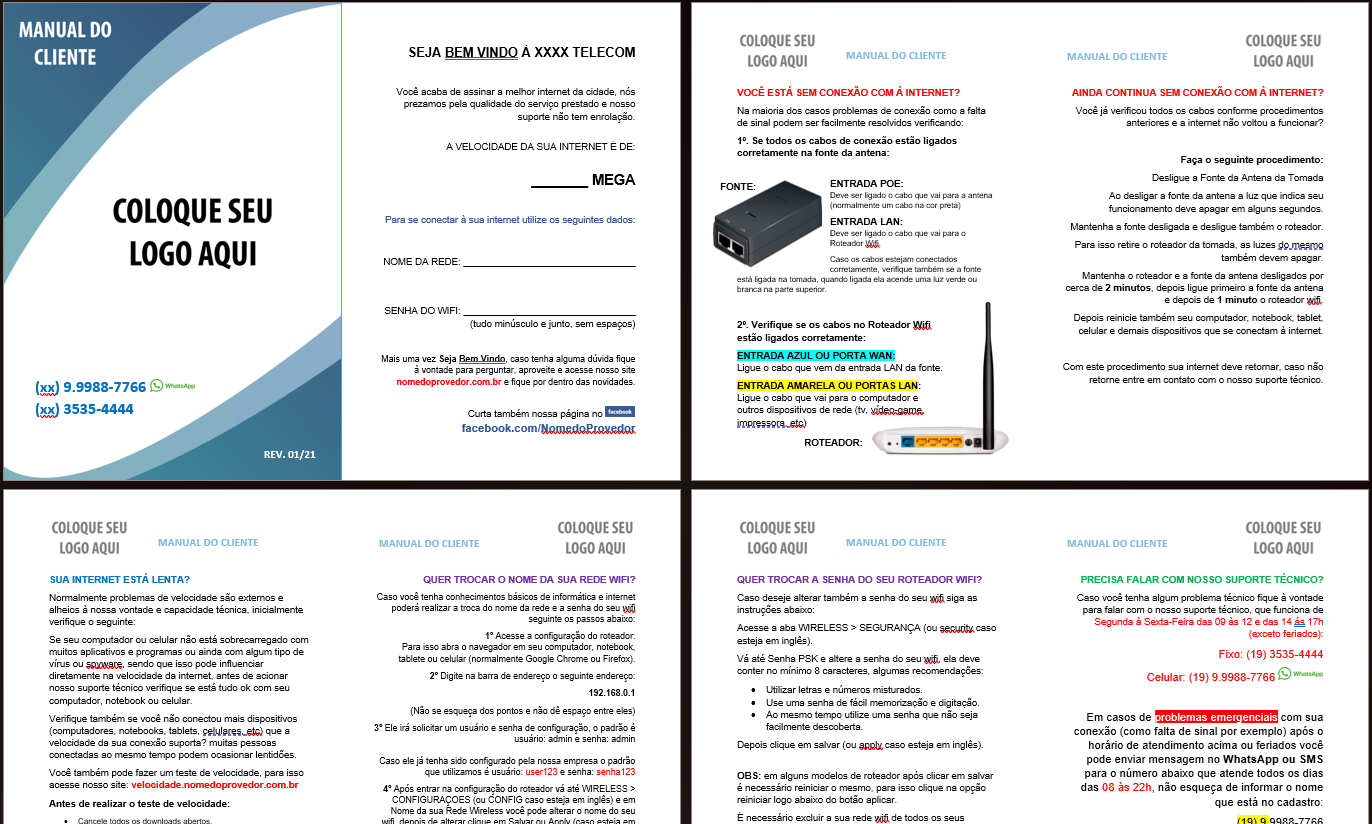 Criei um Manual do Cliente para facilitar o suporte no seu provedor, baixe agora mesmo gratuitamente, personalize e imprima!